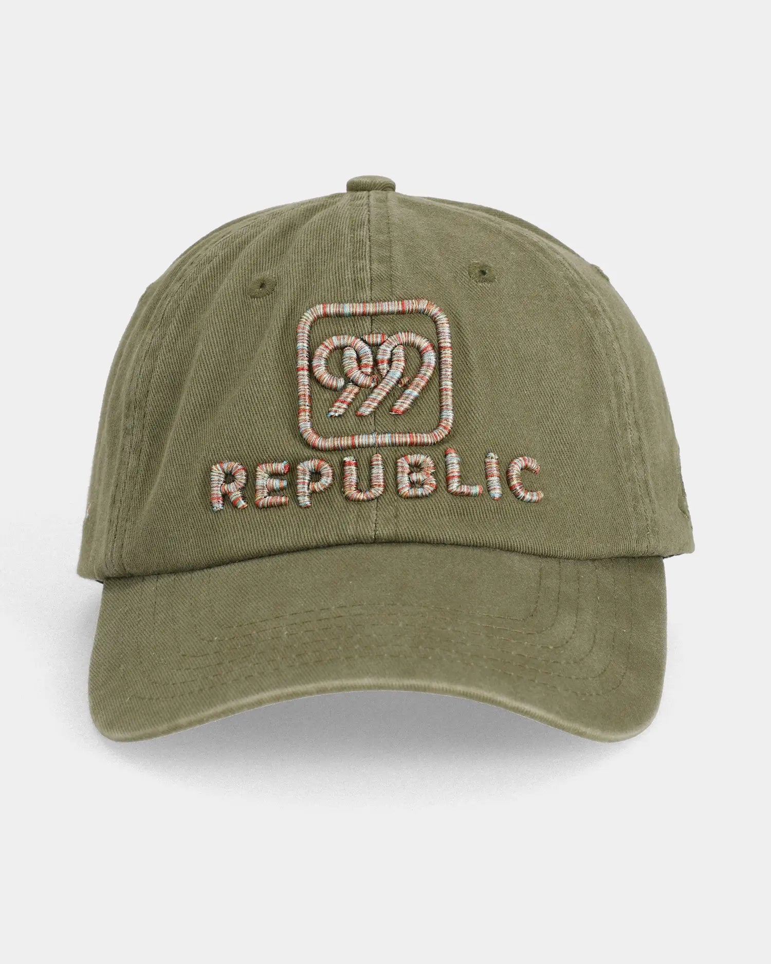 Front Design: 3D embroidered 999REPUBLIC in multi-colored thread