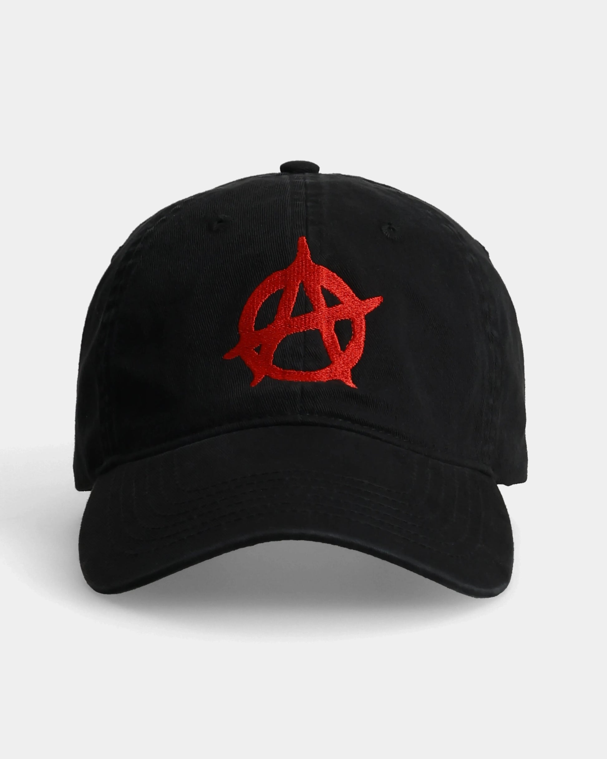 Bold black dad cap with Anarchy embroidery. Classic, relaxed fit. Lightweight, durable, and made to make a statement.