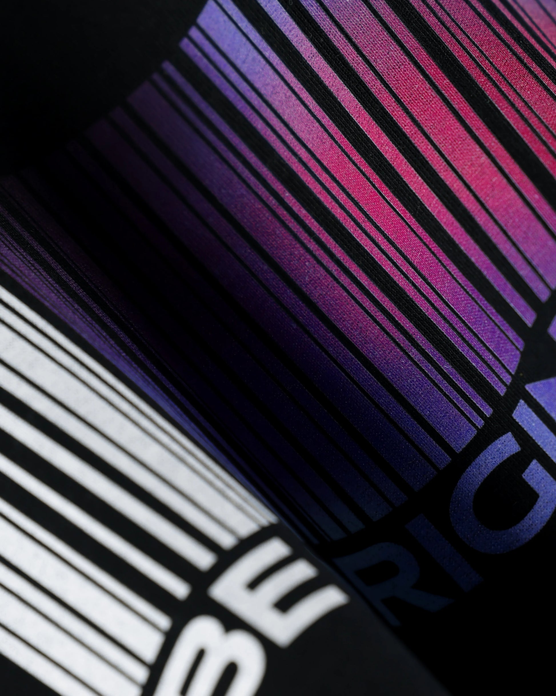 A clean barcode graphic with a neon fade and “BE ORIGINAL” typography. Minimal from far, loud up close. The black base makes it easy to style, anytime