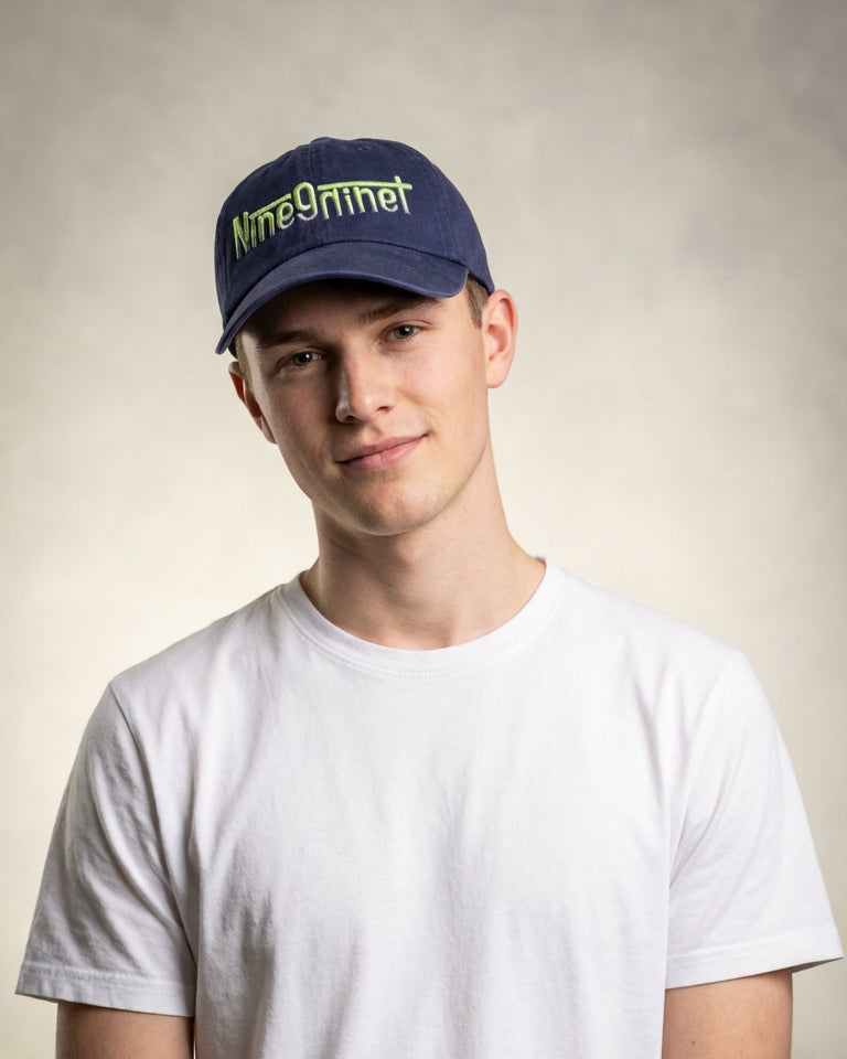 Crafted from premium navy cotton twill, this structured dad cap features a multi-thread 999TEE logo in a soft gradient finish. 3,500+ stitches of statement craftsmanship.