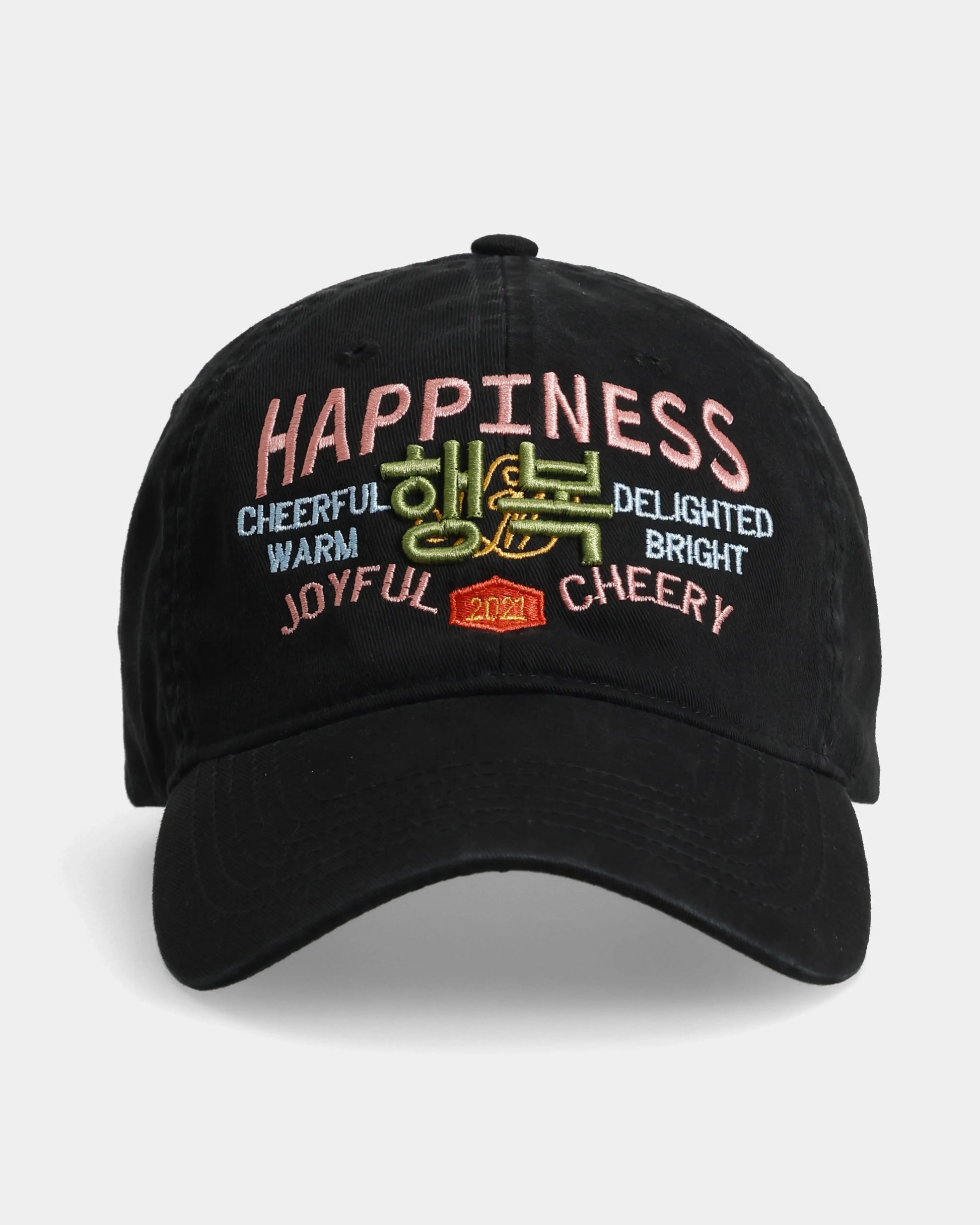 Bold, cheerful, and globally inspired — the Happiness Dad Cap features Korean-English typography and 12,500+ stitches on premium washed cotton for an everyday look that radiates joy.