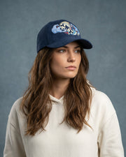 Symbolic and fluid, the Koi Drift Suede Cap features koi fish in dynamic motion. Premium suede, 29,500+ stitches, and deep blue tone make it a standout fusion of calm and strength.