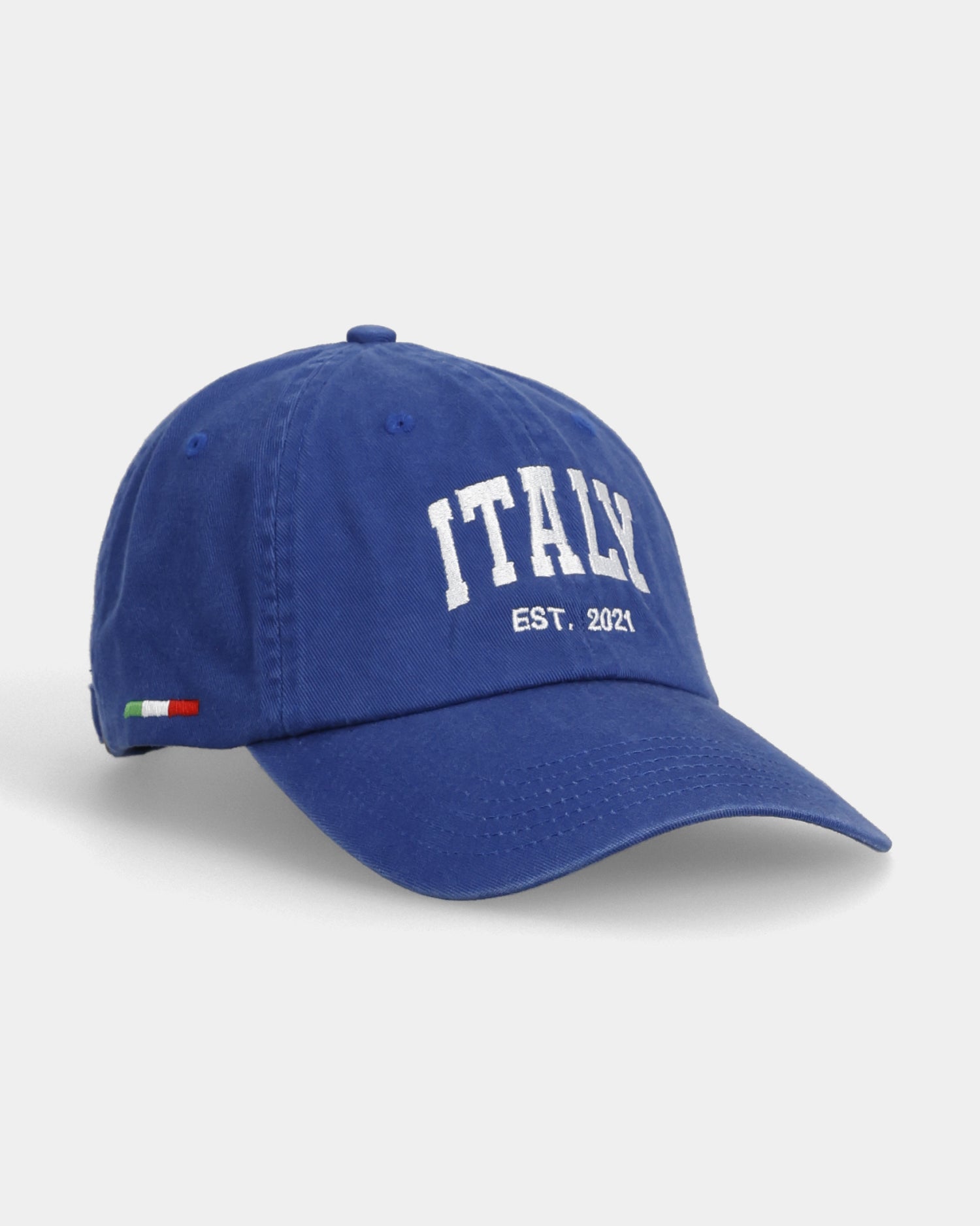 BLUE LAS VEGAS DAD CAP IN WASHED COTTON TWILL. EMBROIDERED WITH OVER 6,500 STITCHES IN CLEAN WHITE THREAD. ICONIC LOOK. EFFORTLESS FIT.