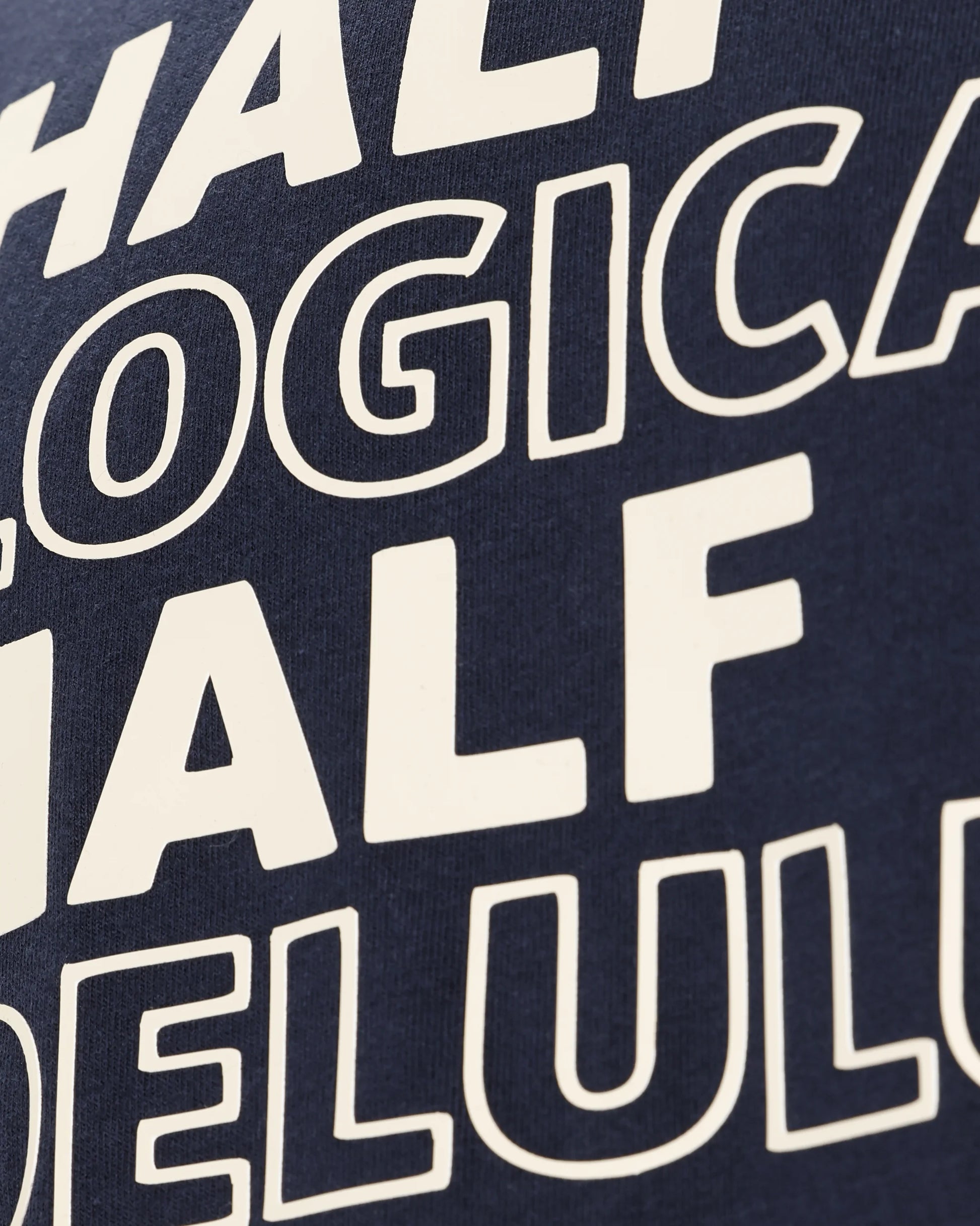 Bold “HALF LOGICAL, HALF DELULU” typography in clean lettering. A regular fit women’s T-shirt in soft 95% cotton, 5% spandex fabric, finished with neat heat transfer vinyl graphic work for daily wear.