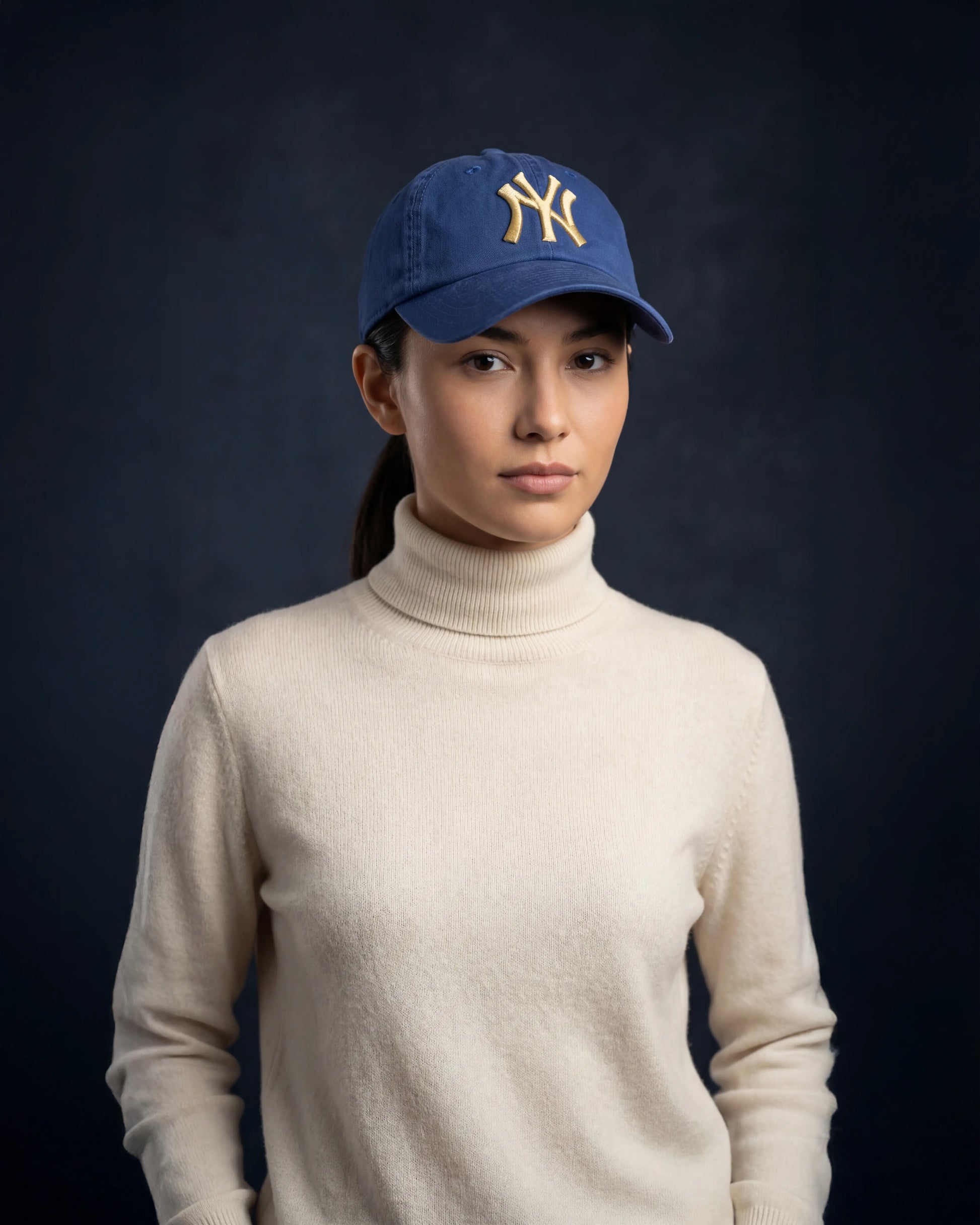 Quiet icon. Mid-washed blue with a raised NY signature. Clean, composed, always appropriate.