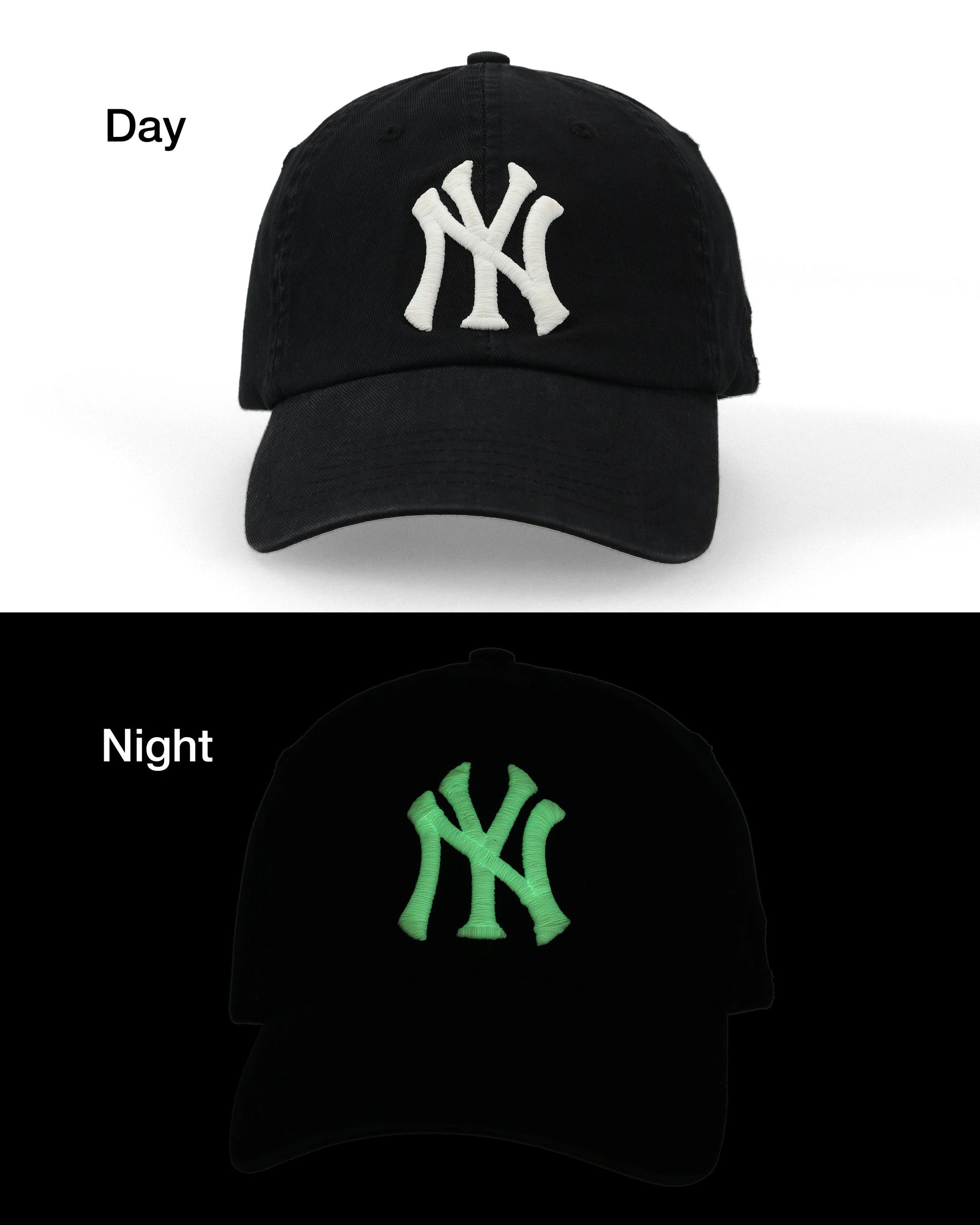 A classic black dad cap with a subtle twist. The raised NY embroidery charges under light and reveals a soft glow in the dark, giving an everyday staple a more distinctive finish.