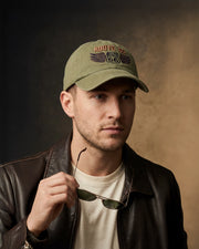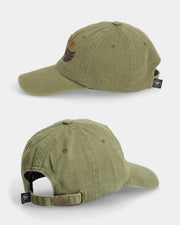 Embrace classic American road trip vibes with the ROUTE 66 dad cap. Featuring a flat-embroidered design on an olive-washed cotton twill cap, it offers a timeless look with an adjustable brass buckle strap for a perfect fit.
