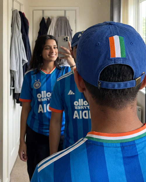 A clean India statement in classic blue, finished with a tricolour crest at the back. Built for matchdays, made to stay in rotation long after the final.