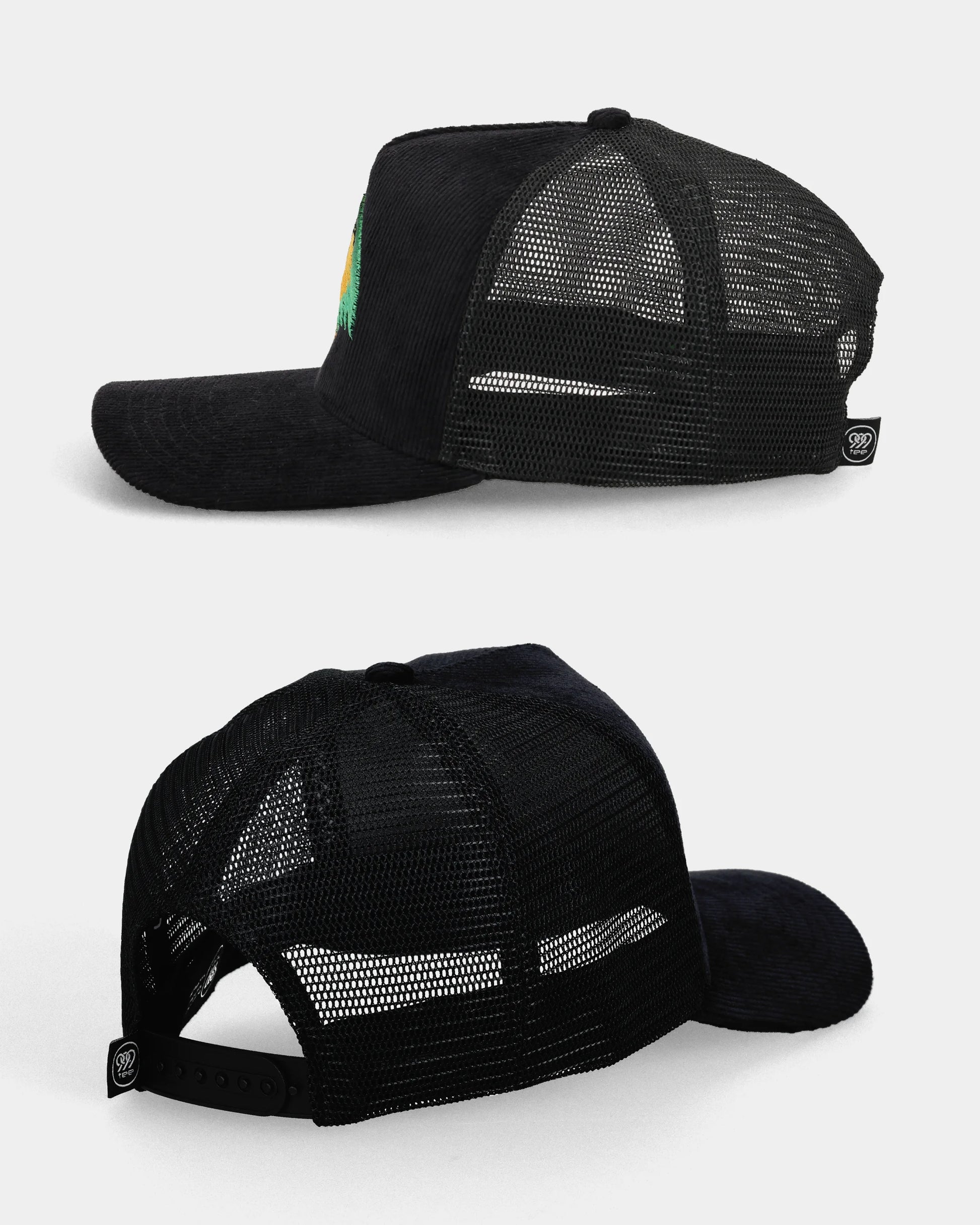 Escape to the tropics with the Tropical Breeze Trucker Cap. This classic black trucker cap features a vibrant parrot design with a gradient color palette, all brought to life with 3D puff embroidery. Crafted from premium corduroy, this cap offers both style and comfort.
