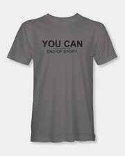 You can. End of story. Printed clean on asphalt. A regular fit men’s T-shirt in soft 180 GSM cotton-poly-viscose tri-blend, finished with a crisp heat transfer vinyl graphic.